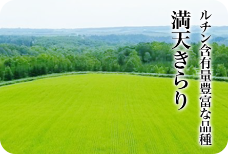 神門では、苦味が弱く良食味であり、ルチン含有量が豊富な品種「満天きらり」を活用しています。従来の韃靼そば品種に比べて飲みやすさと品質を両立しています。